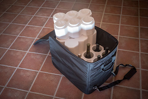 If I’m traveling, I pretty much always find myself traveling with wine and doing what I assume most people did which was to wrap bottles in my dirty laundry on the way back. Beyond a touch insulting to the exterior of the wines, it was potentially perilous as while bottles are strong, if they touch each other, they can easily break. Somehow, whenever opening my suitcase at the end of a trip, nothing ever broke. This exhalation ritual gets old though and you know your days are probably numbered when some security check puts the bottles back in poorly.