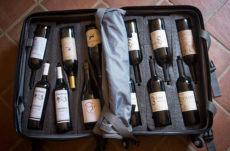 That trip was by train and it worked perfectly. Naturally the bigger test is by airplane which was also done with a trip to Georgia at the beginning of the month, thus the curious alphabet on the bottles above. Again, it performed fantastically with everything suspended in place. And as it seems the security at Sabiha Gökçen Airport in Istanbul doesn’t know what the hell wine bottles are, they actually opened it and pulled everything apart seemingly in search of some false bottom or who knows. It was quite clear they pawed through it as the bottles weren’t in the same spot as when I left. But, despite them basically slapping it all back together haphazardly, everything came back just fine although I could sense my wines were perturbed in their fondling.