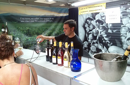 As the Mostra de l’Empordà is the older of the two, it’s the best to talk about first. Set on La Rambla (yeah, it’s not just a Barcelona thing) in the center of Figueres, it’s a very pleasant outdoor venue which is where most of the events in town are held. With trees from the 19th century arching overhead, the wineries set up their booths along one side of the Rambla. The other side is reserved for something of a “bar” area. The event is usually scheduled to take place on the first Thursday of the month and closes down four days later on the following Sunday, going as late as midnight every day. This is of course problematic given that this is typically right in the middle of the harvest season and it’s very hard for small wineries to take off this much time to attend. Even if they can, the fee for being part of it is several hundred euros, making it a bit more out of reach and why, out of nearly 50 wineries registered with the DO Empordà, less than 20 were at the fair.